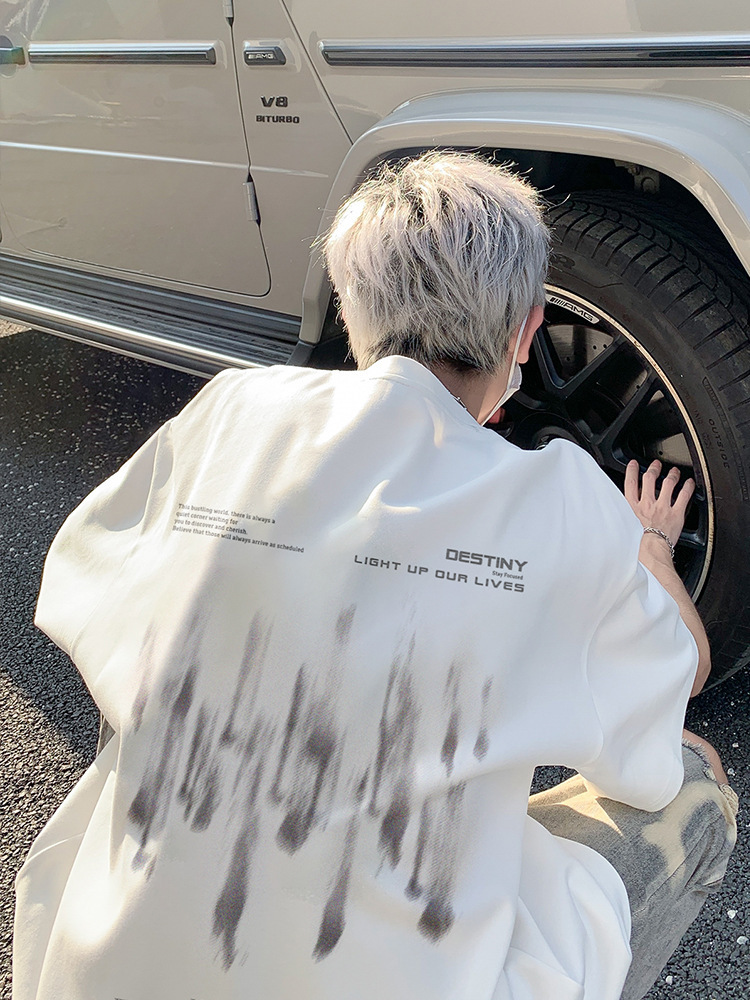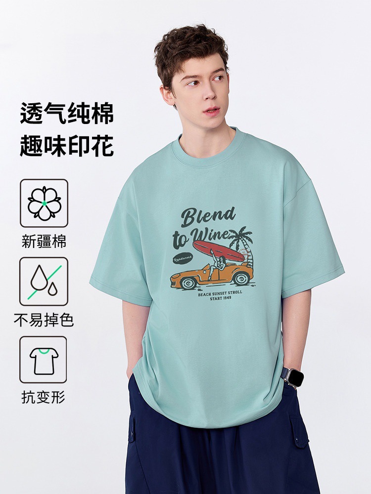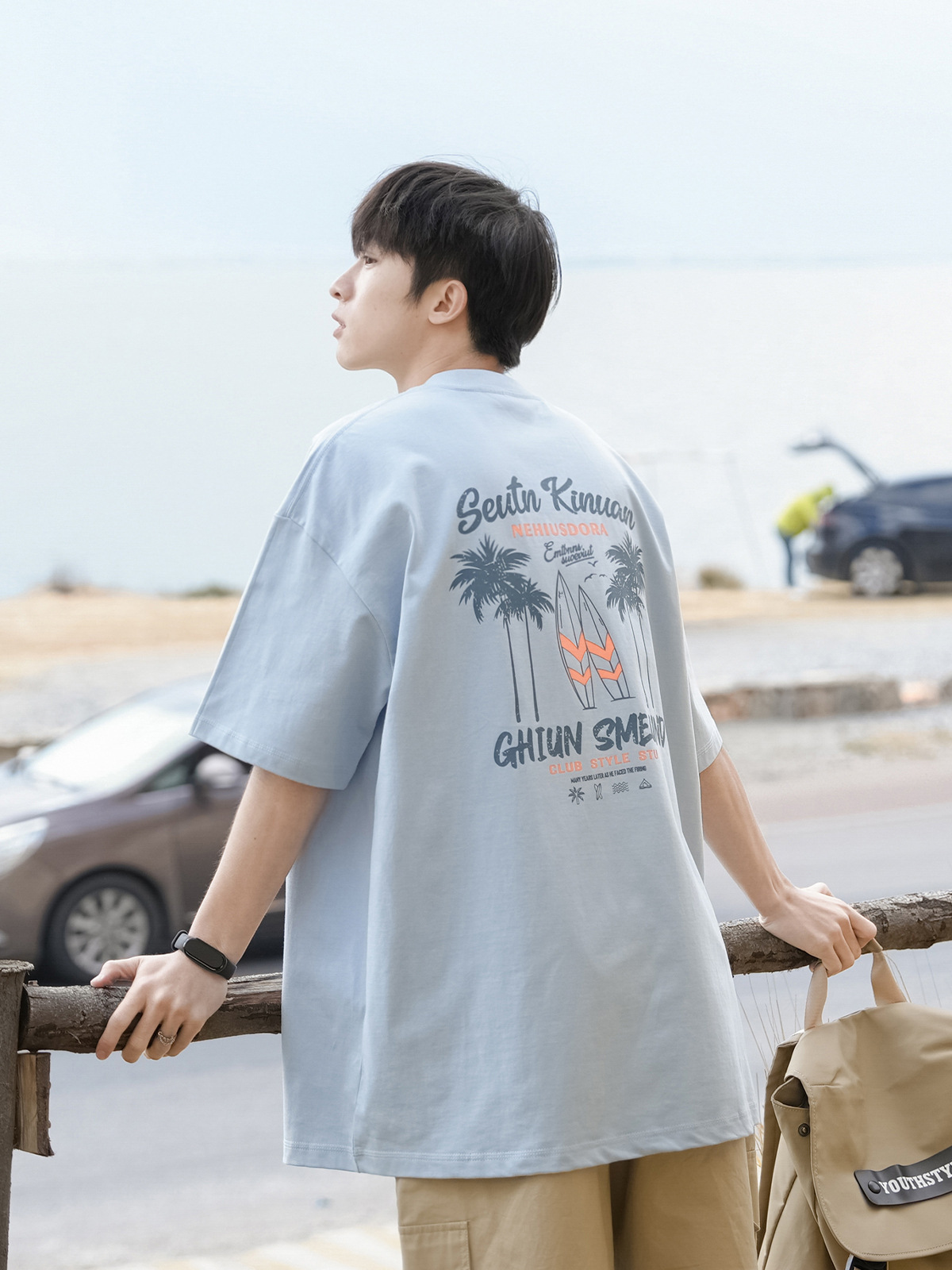 220 グラムヘビーウェイトコットンプリント半袖 Tシャツボーイズルーズ夏の新しいトレンディなアメリカンティーンエイジャー Tシャツ