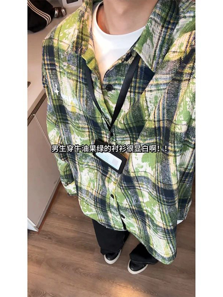 ヴィンテージグリーンタイダイチェック柄シャツメンズハイエンドハンサム長袖シャツアメリカン日焼け止めカップルジャケット