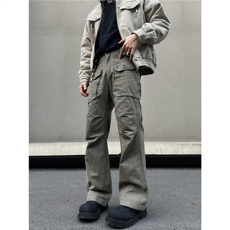 アメリカンレトロ迷彩オーバーオールメンズトレンディハイストリートマルチポケットデザインルーズストレートワイドレッグカジュアルロングパンツ