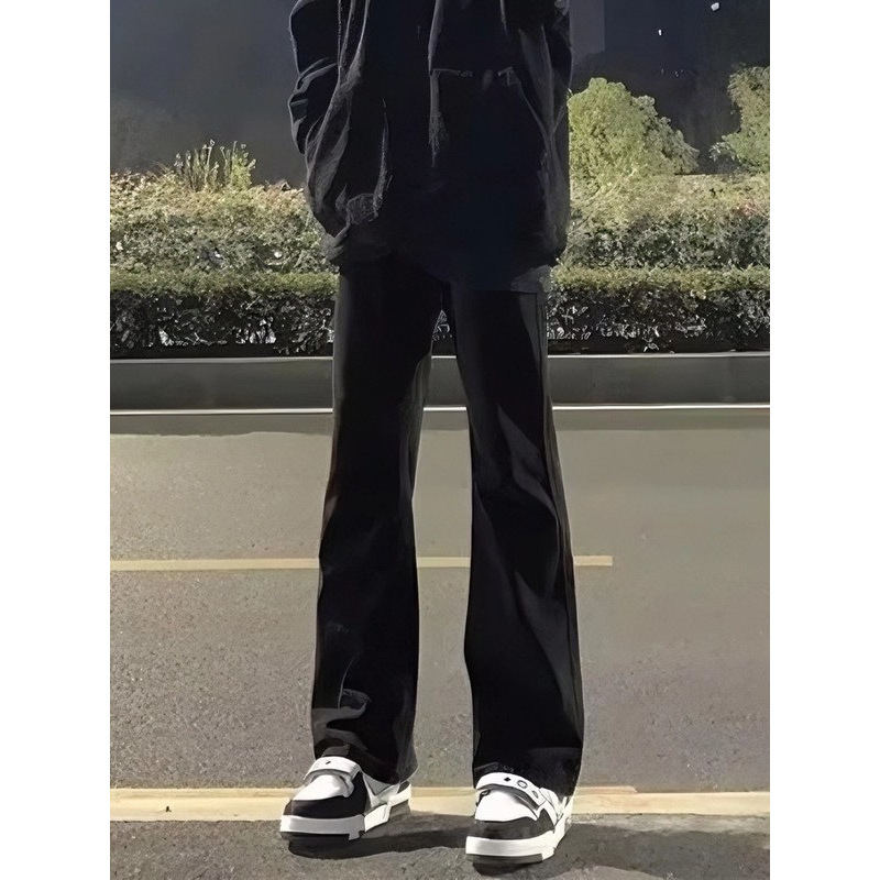 アメリカンシミターマイクロフレアパンツ春秋ハイストリートピュアブラックスリムフィットマイクロフレアジーンズメンズハイストレートパンツ