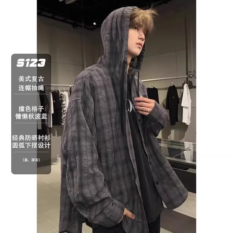 アメリカン物理日焼け止めテクスチャチェック柄シャツ男性と女性のための夏薄いカップル多用途シャツジャケット 2025 新しいスタイル