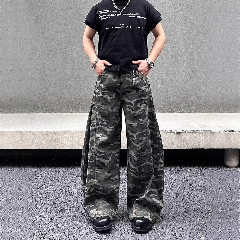アメリカンレトロ迷彩ウォッシュスナイパージーンズ男性と女性のための新しいルーズストレートパンツワイドレッグカジュアルオーバーオール