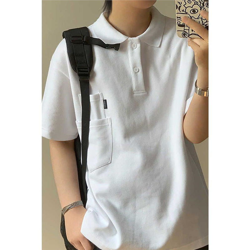 ホワイトポロシャツ半袖2025新しい夏の男の子のルーズで多用途なカジュアルTシャツトップデイリーマルチポケット
