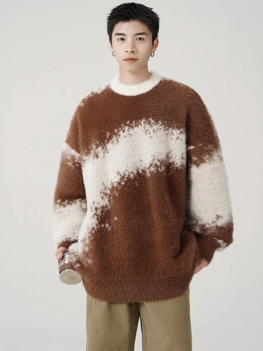 Oversize秋冬越境アメリカのミンクの毛の怠惰な風のセーターの男性の復古の色のニットのゆったりしている潮牌をまねます。