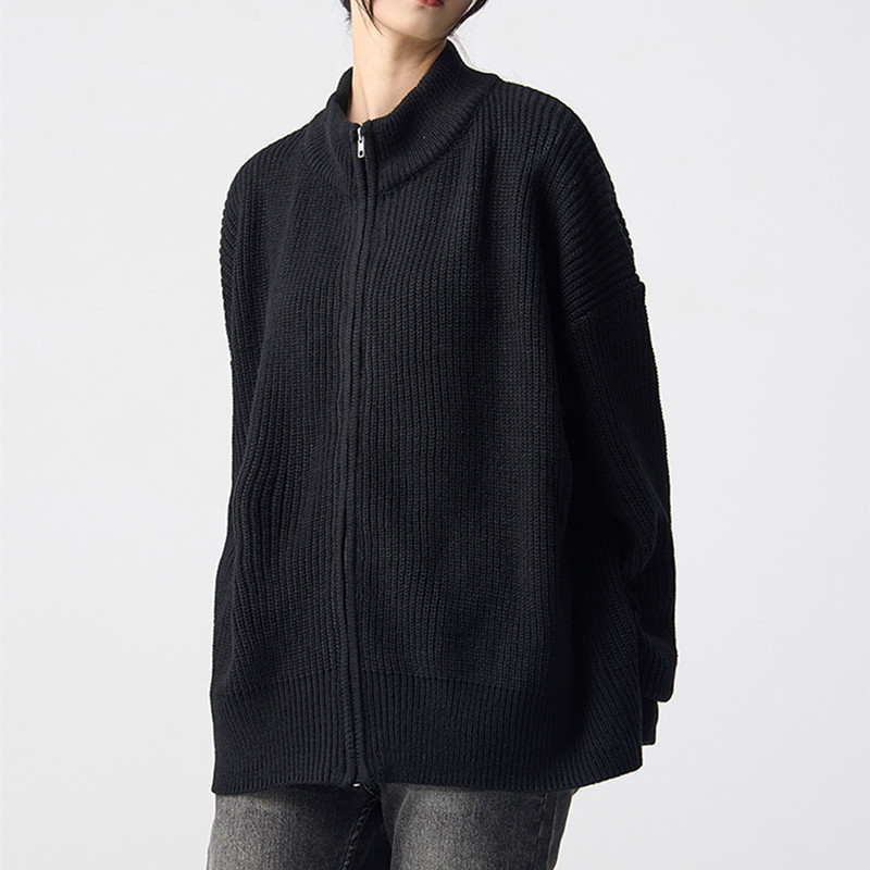 アメリカの高街秋冬の怠惰な風のカップルはカーディガンのセーターのコートを編みます。