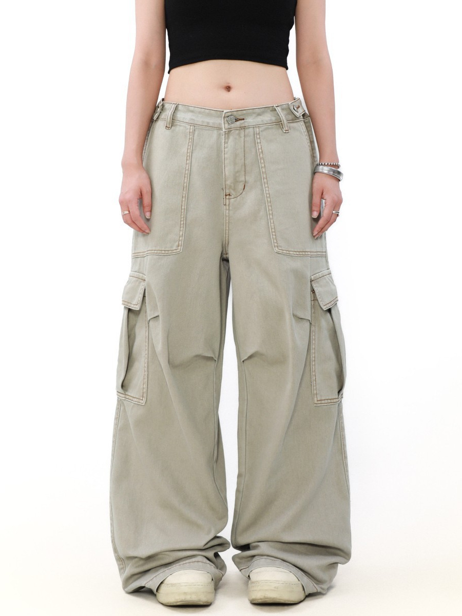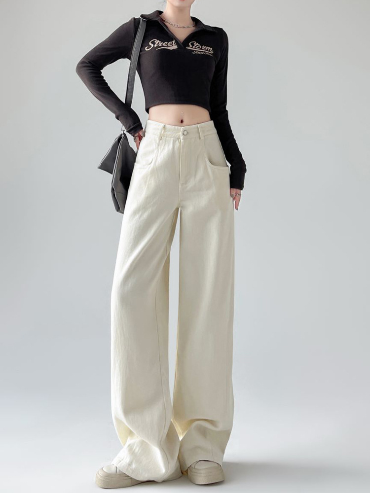 白い広脚ジーンズ女性春秋高街バナナパンツアメリカレトロ高腰ストレートゆったり感モップ