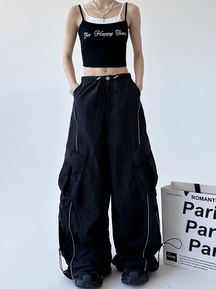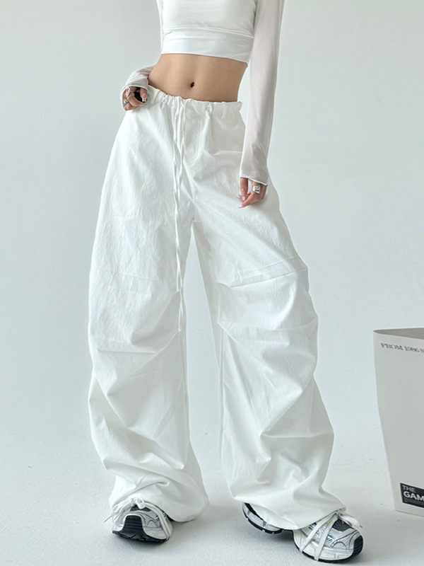 白いワイドパンツの女性2024の新しい春と秋のゆるいカジュアルパンツの高腰工装ズボンの垂直感のあるストレートパンツ