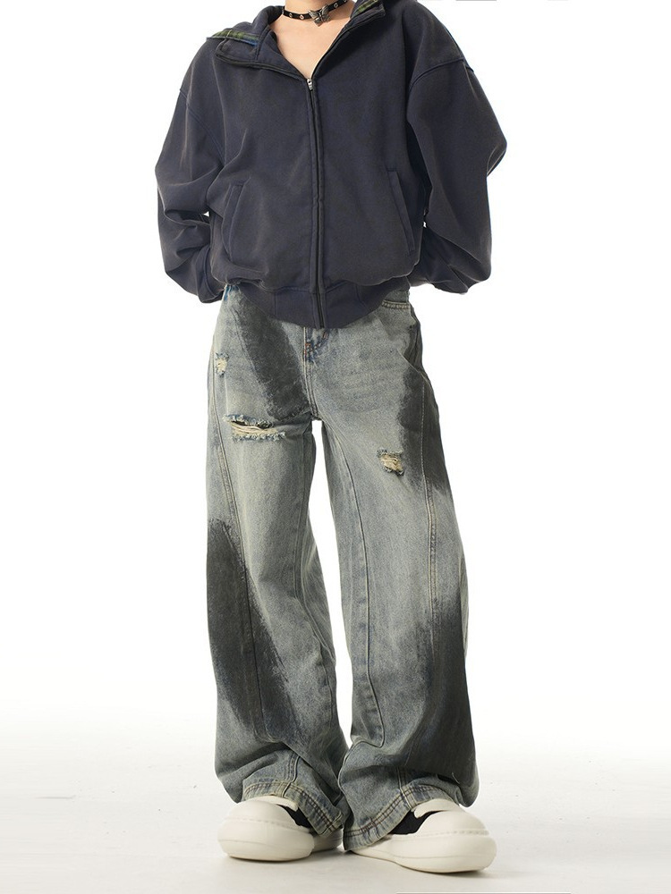 2024アメリカ式高街vibeは墨をかけて穴を割ったジーパンの男女がゆったりとしています。