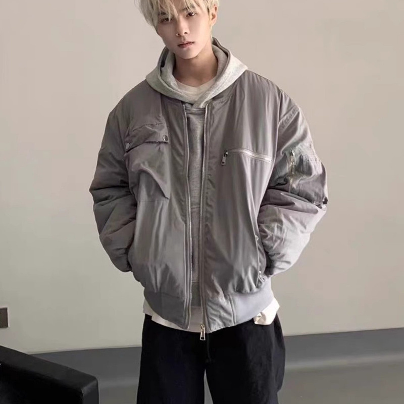 ジッパーを着た野球襟の通常のタイプのアメリカ式黒色パイロットジャケット男秋冬ショート野球綿服