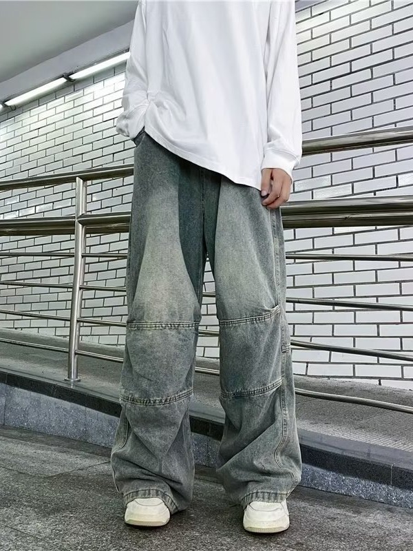 アメリカ式高街cleanfitは古い水洗いジーンズ男春秋潮牌vibe風ゆるいシンプルなストレートパンツを作る