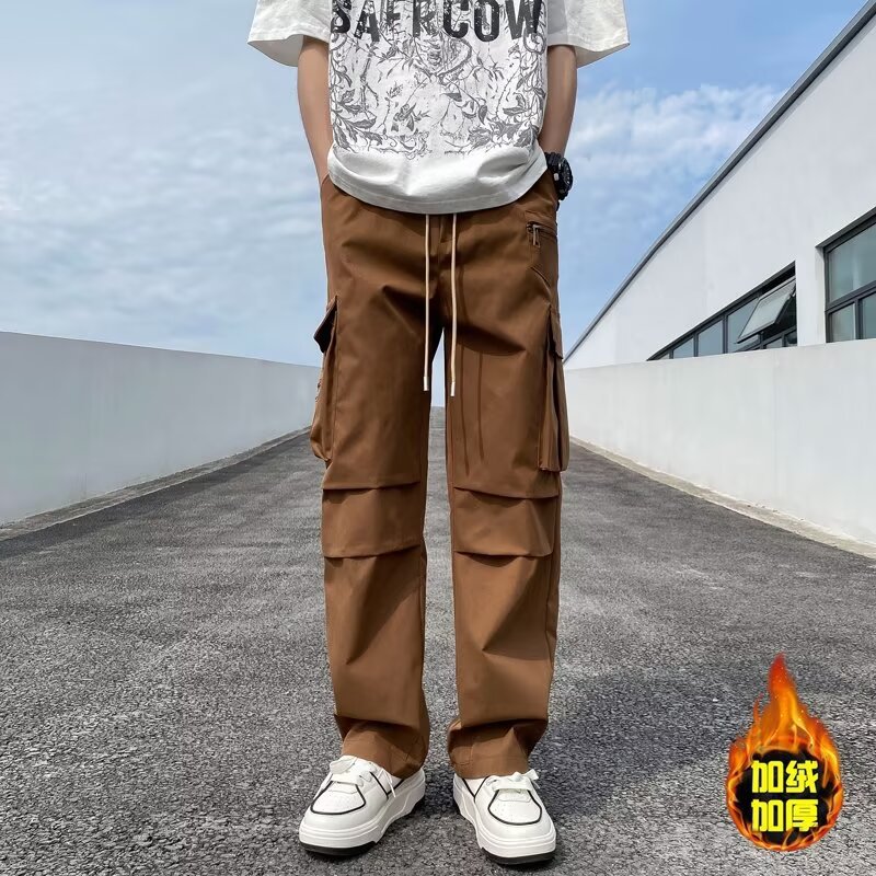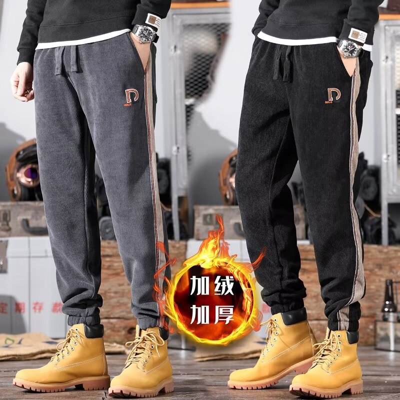 2024秋冬の加毛衛ズボンの男性は腰を緩めてカジュアルなズボンの学生に合わせてズボンのファッションを合わせます。