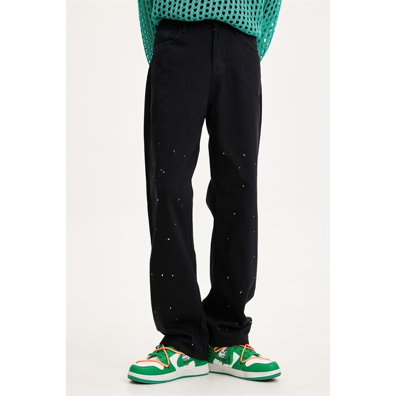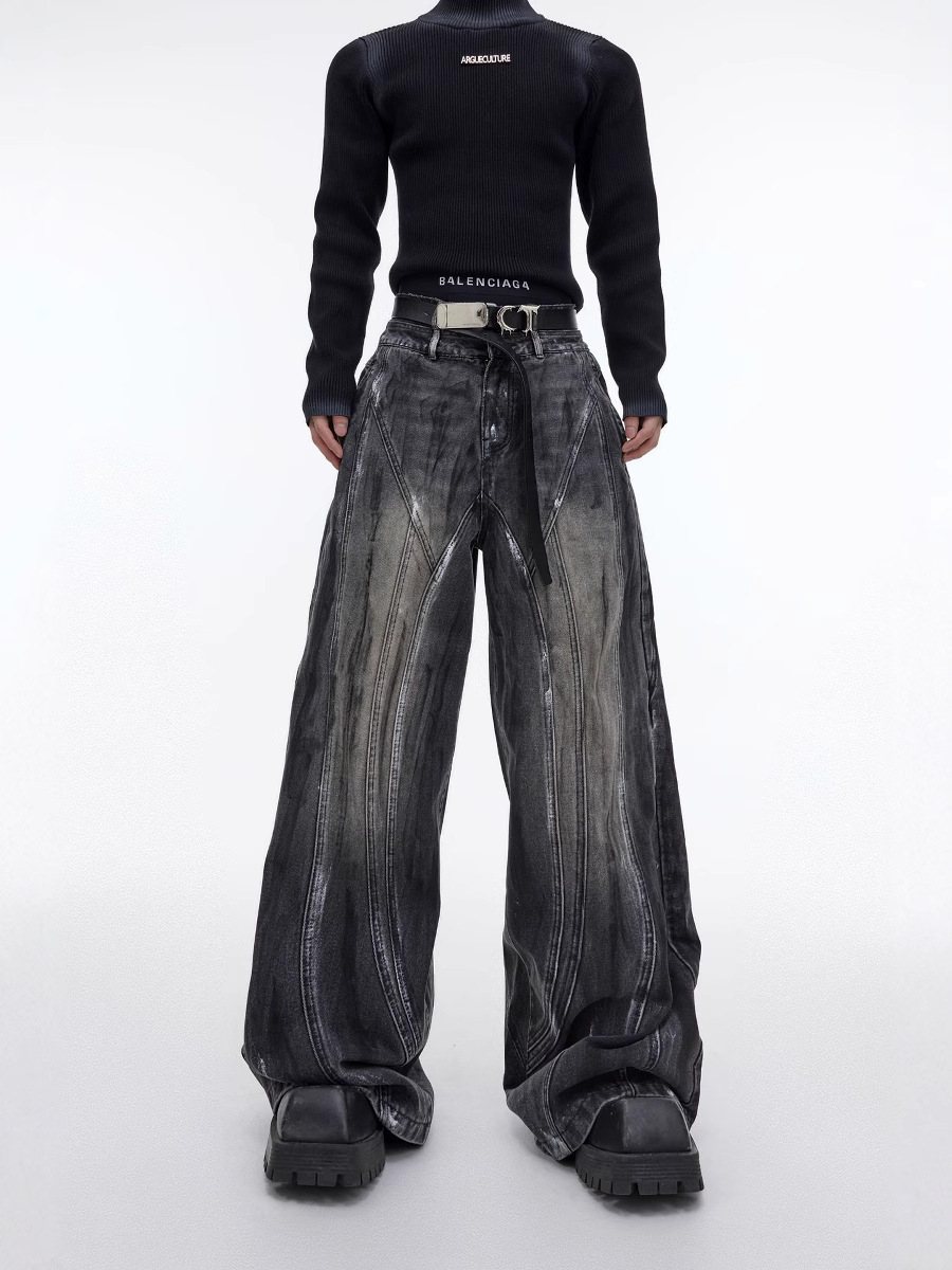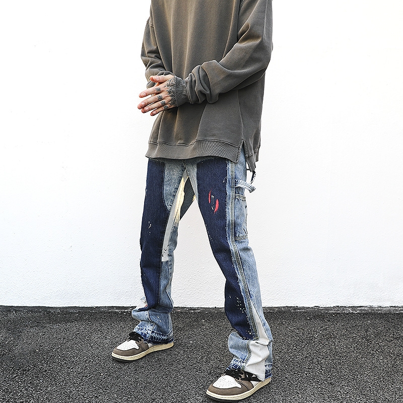 高街風重工は水を洗って古い墨をかけて色を合わせてラッパのズボンの亜の潮流の個性の小さい大衆がジーパンを積みます。