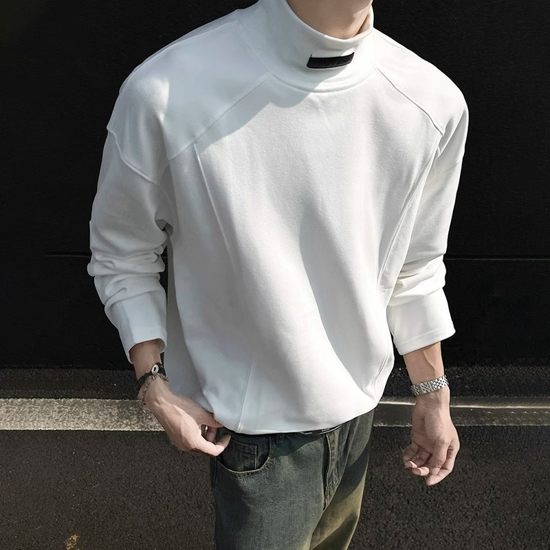 白い半高襟両面徳絨毛底シャツ男cleanfit小襟元保温インナー長袖tシャツ秋冬