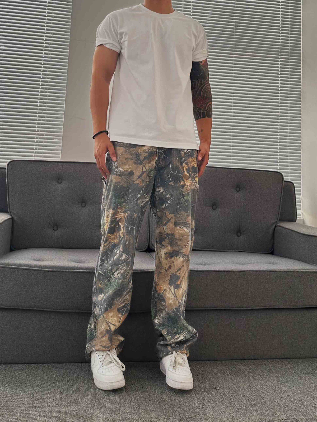 現物! アメリカンSTU風枝カエデ迷彩ゆるい工装ズボンストレートジーンズヴィンテージカジュアルパンツ