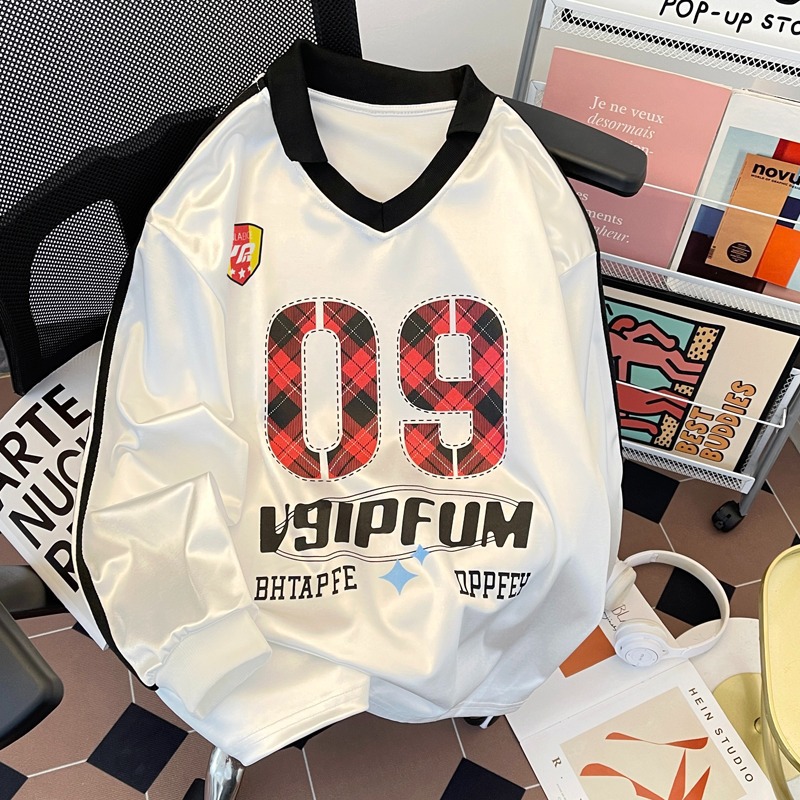 メンズ2024アメリカンレトロなスポーツアルファベットプリント長袖パーカーtシャツ男女ゆるいカジュアルコート