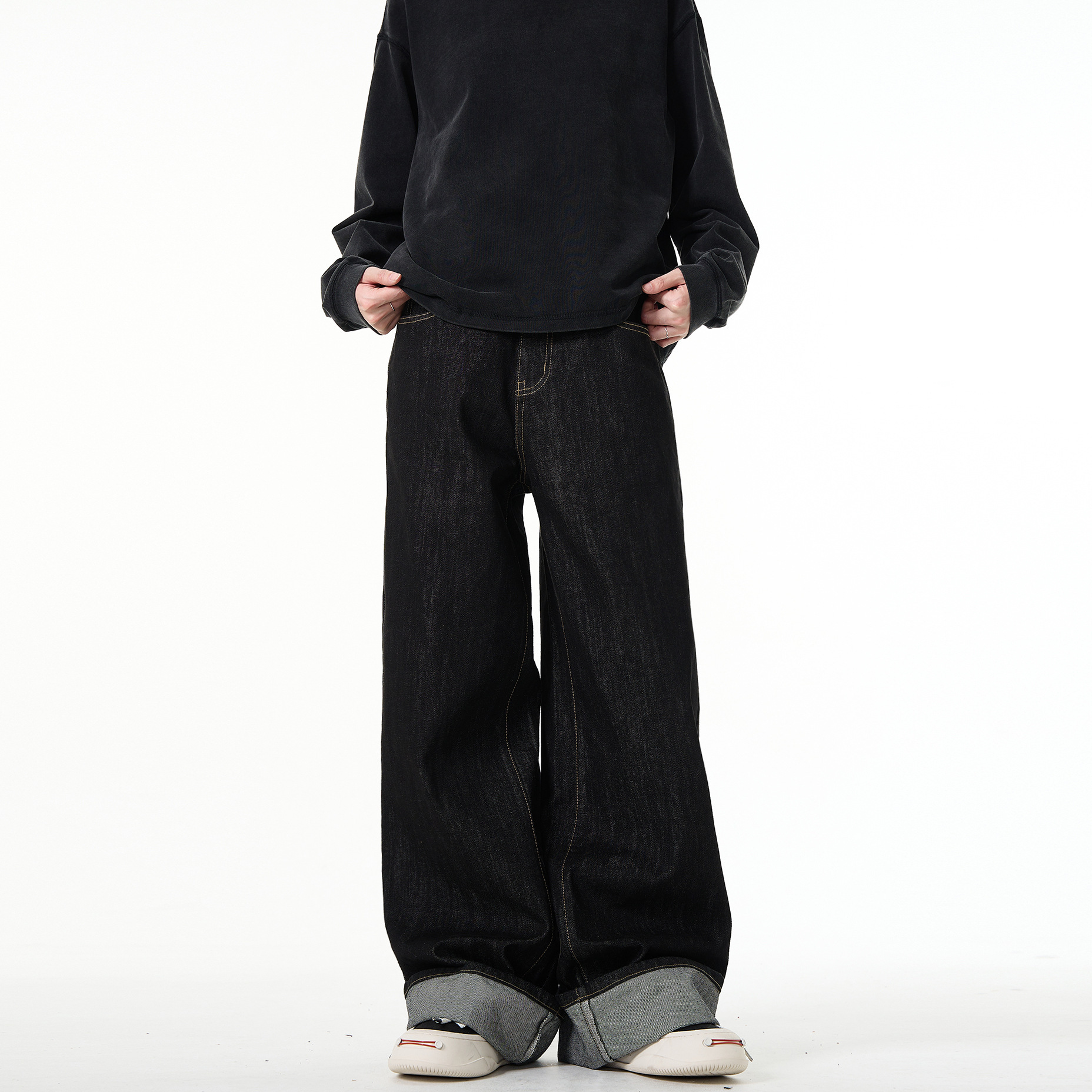 2024新型アメリカンレトロcleanfitワイド脚ジーンズ男ゆるいシンプルカジュアルモップズボン