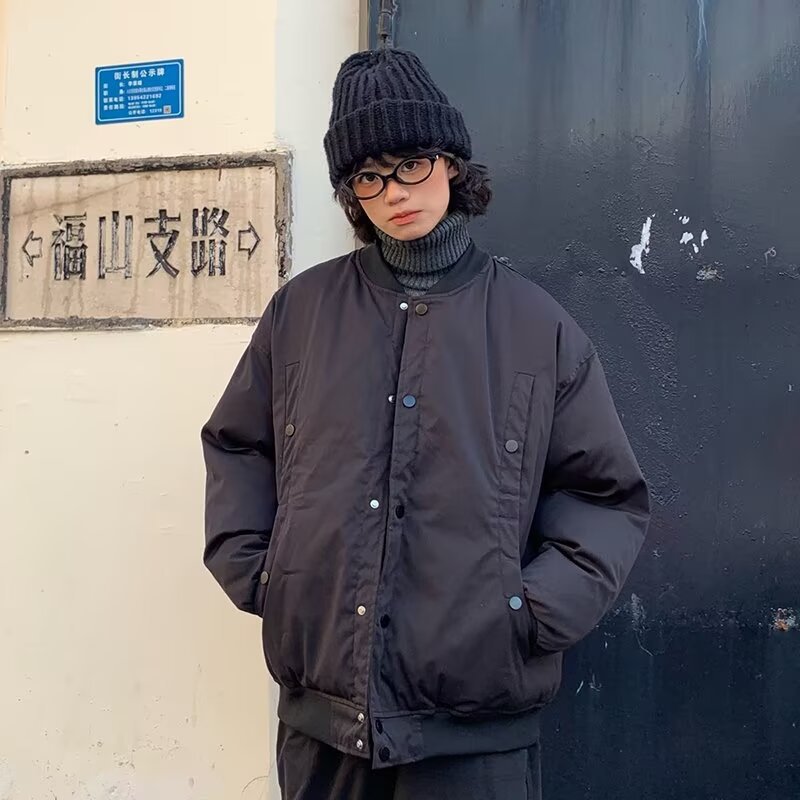 冬のカジュアルでゆったりとした保温野球服の綿服と男女の日本系レトロなカップルの厚い飛行服の綿服のコート