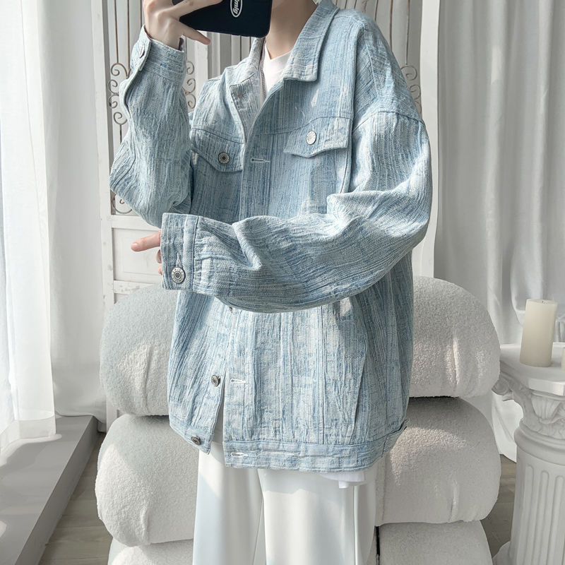 秋装新型デニム男性香港版insファッションレトロ古いデニムジャケット男性水色上着コート