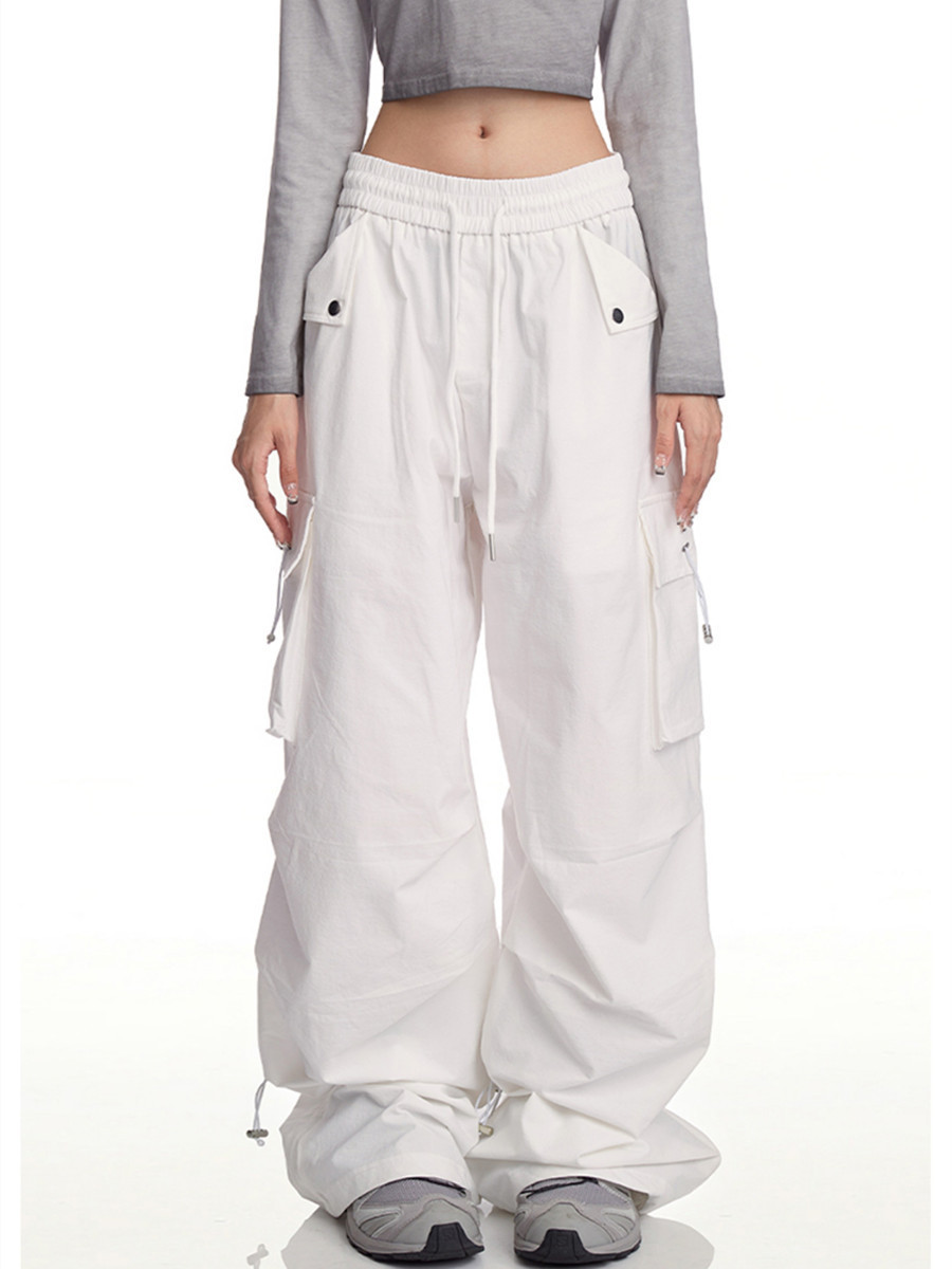 白い工装ズボンの女性アメリカ式hiphop高街ヒップホップジャズパンツ