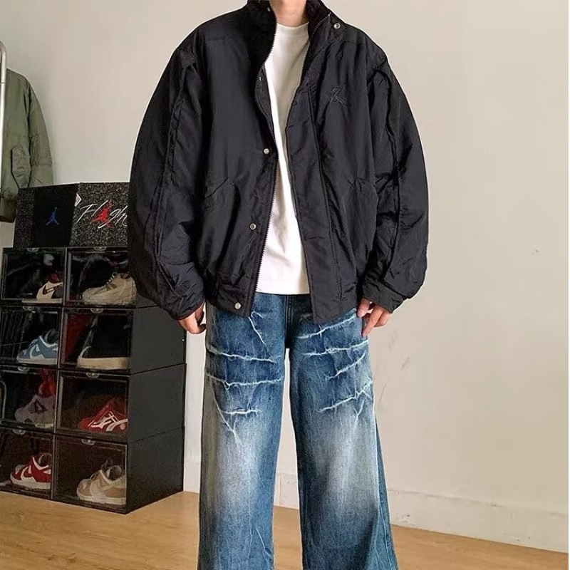 2024冬のアメリカのデザイン感は、スタンドカラーの綿服のコートを構築します。