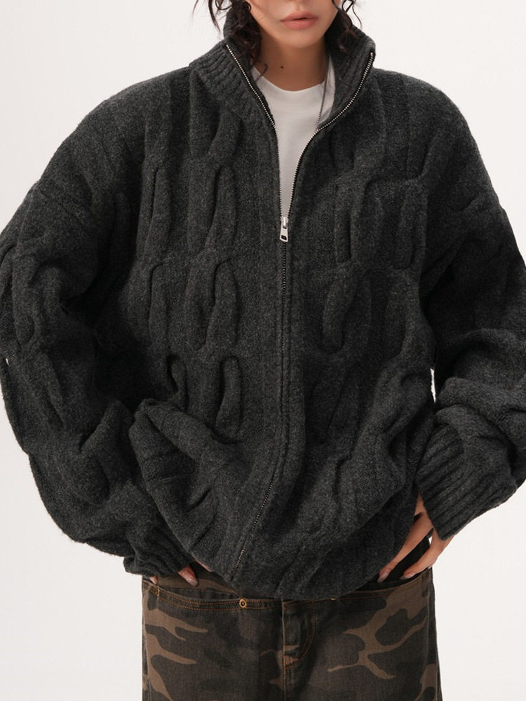 アメリカのレトロな麻の花のニットのカーディガンの女性の男性の24秋冬の新型の重いポンドのゆったりしているカジュアルな百合のセーターのコート