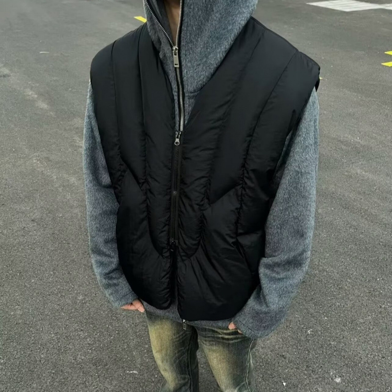 冬の線型分割郭形充綿保温高街解构百合vibe大衆設計感アメリカ馬甲男