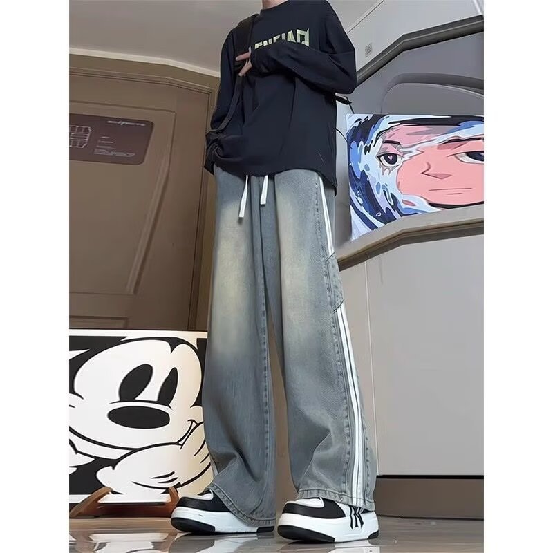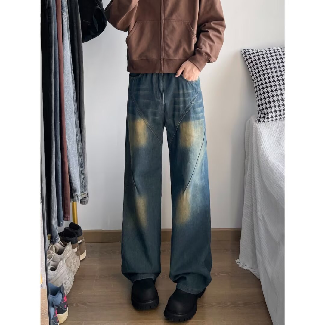 直筒常規青少年潮春秋長ズボン水洗いレトロレトロブルージーパン