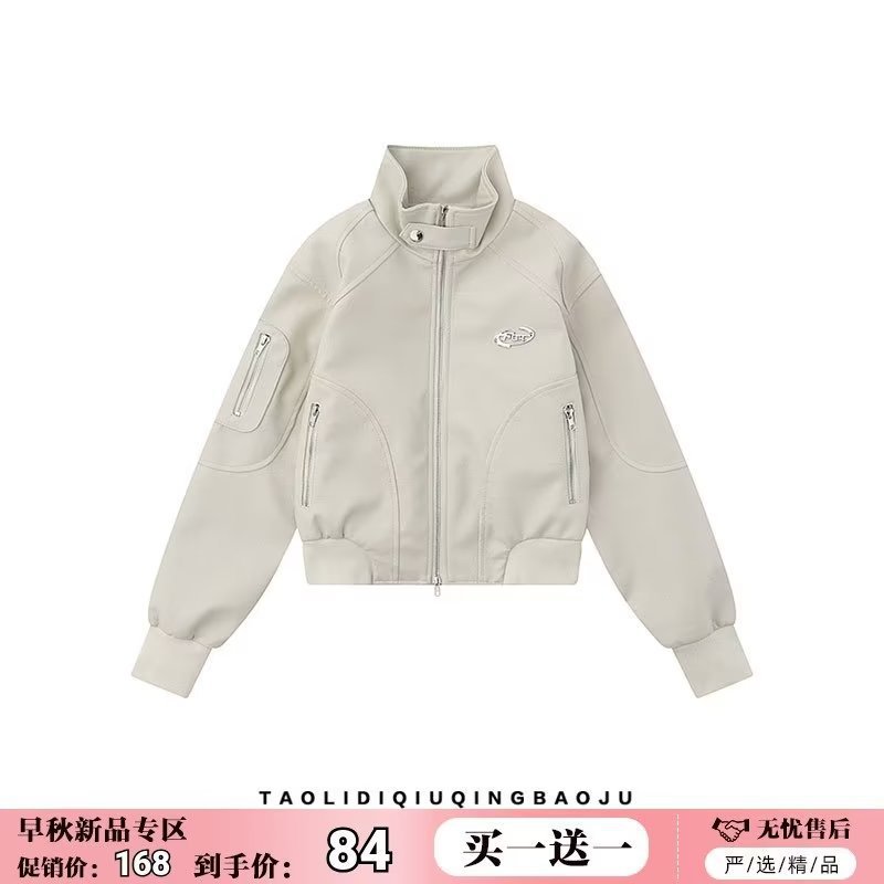 国境を越えたアメリカの街頭デザイン感は立襟ジャケットの女性秋の機能風ins潮牌のゆるい短い皮をつなぎ合わせた