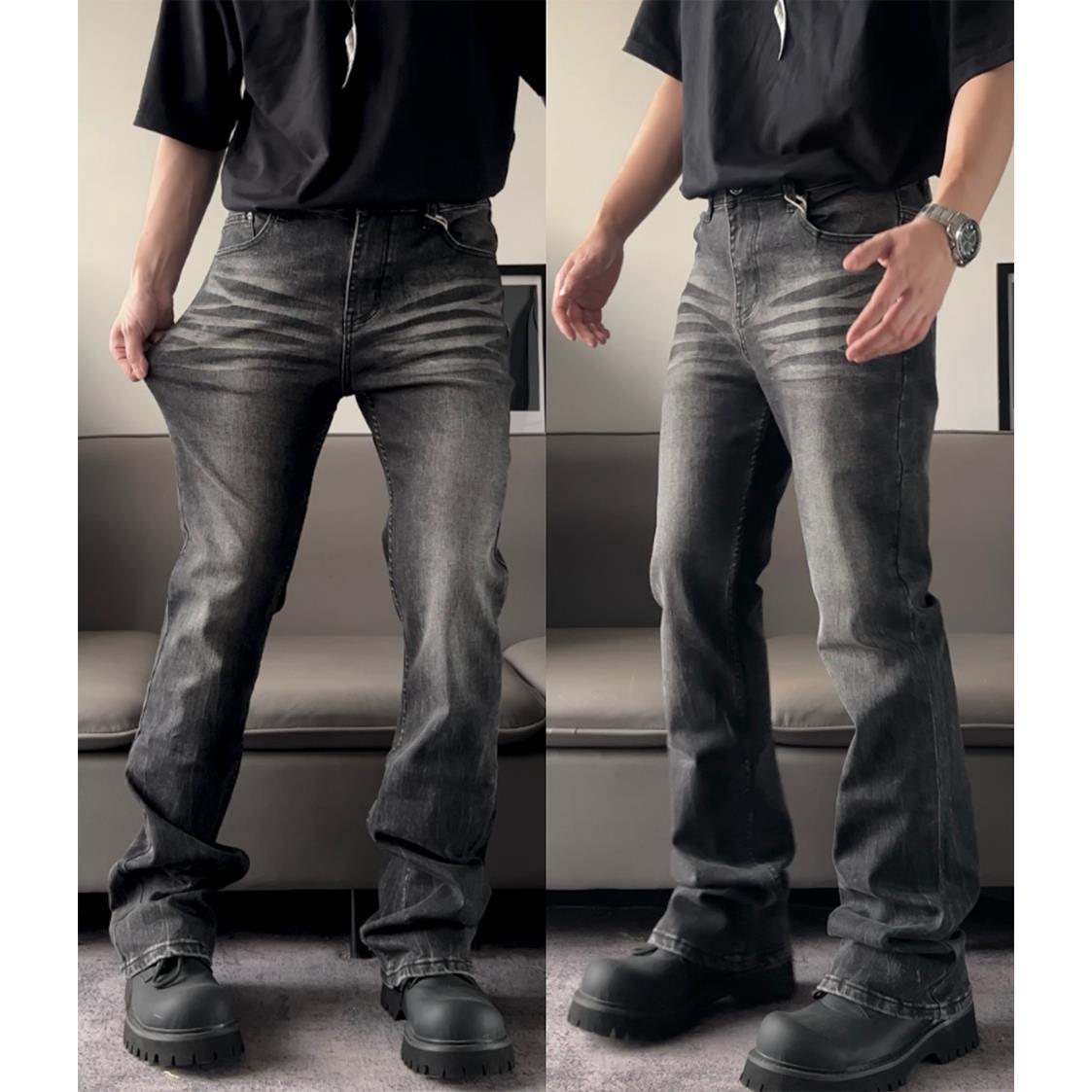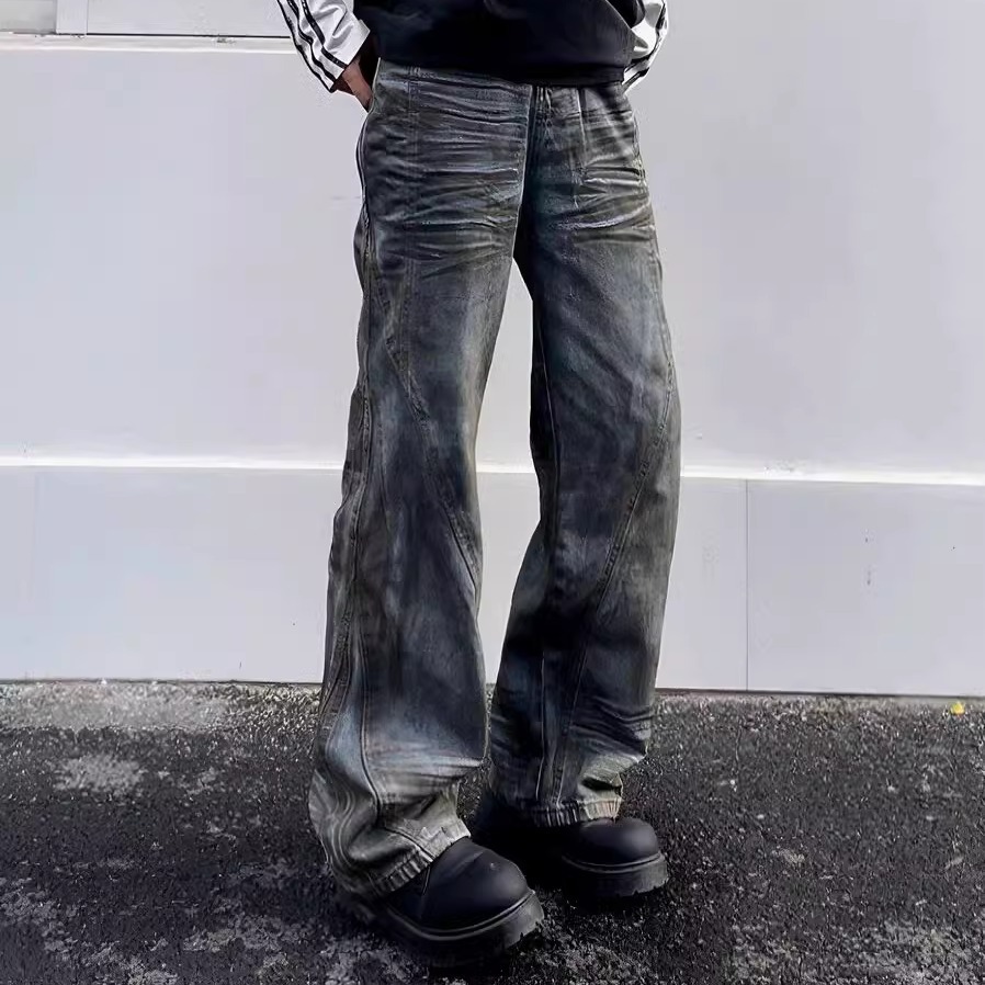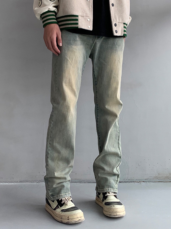 高街vibe風水洗いは古い直筒弾力デニムの長ズボンを作ります。
