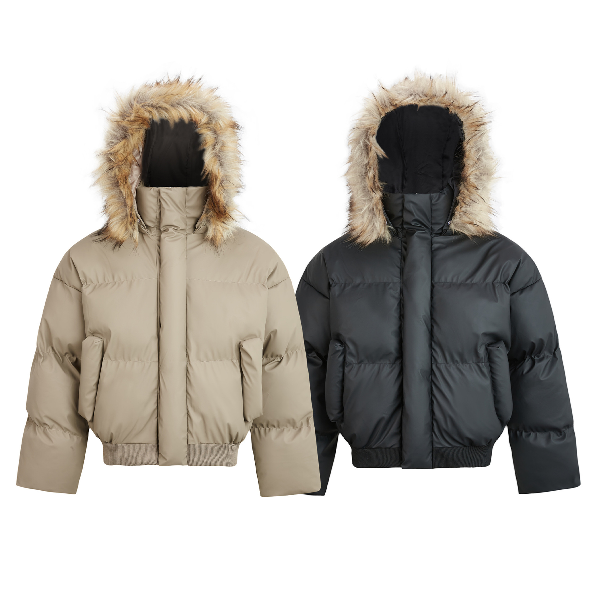 2024アメリカ式cleanfit毛襟コート座山彫刻フード付き綿服男女冬にジャケットの綿服を厚くする