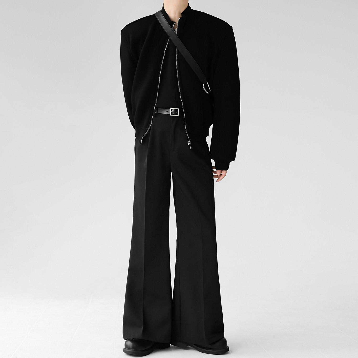 2024香港風復古ベルベットのコート男秋冬郭型不規則な短い機関車服革ジャケット潮