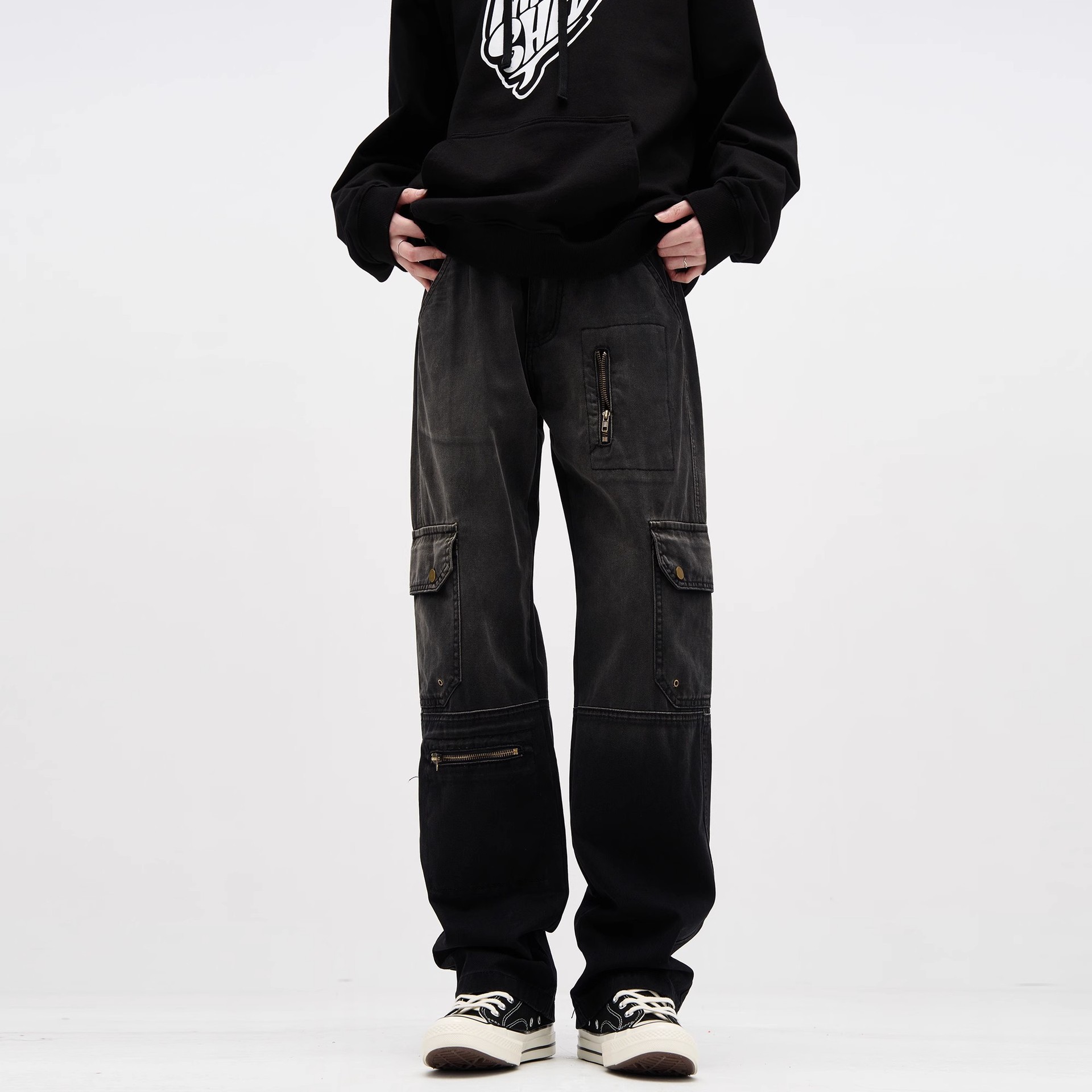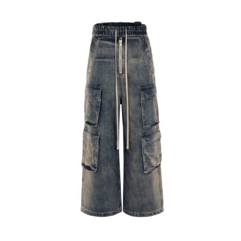 アメリカグラデーションvibe風水洗い直筒工装ジーンズ高街ゆるい多ポケット新型カジュアルズボン潮