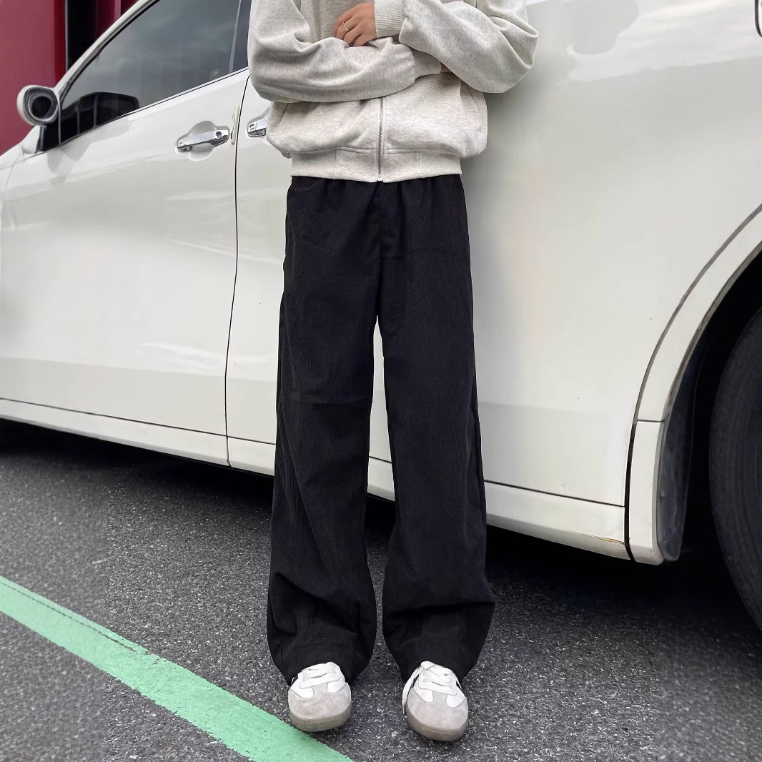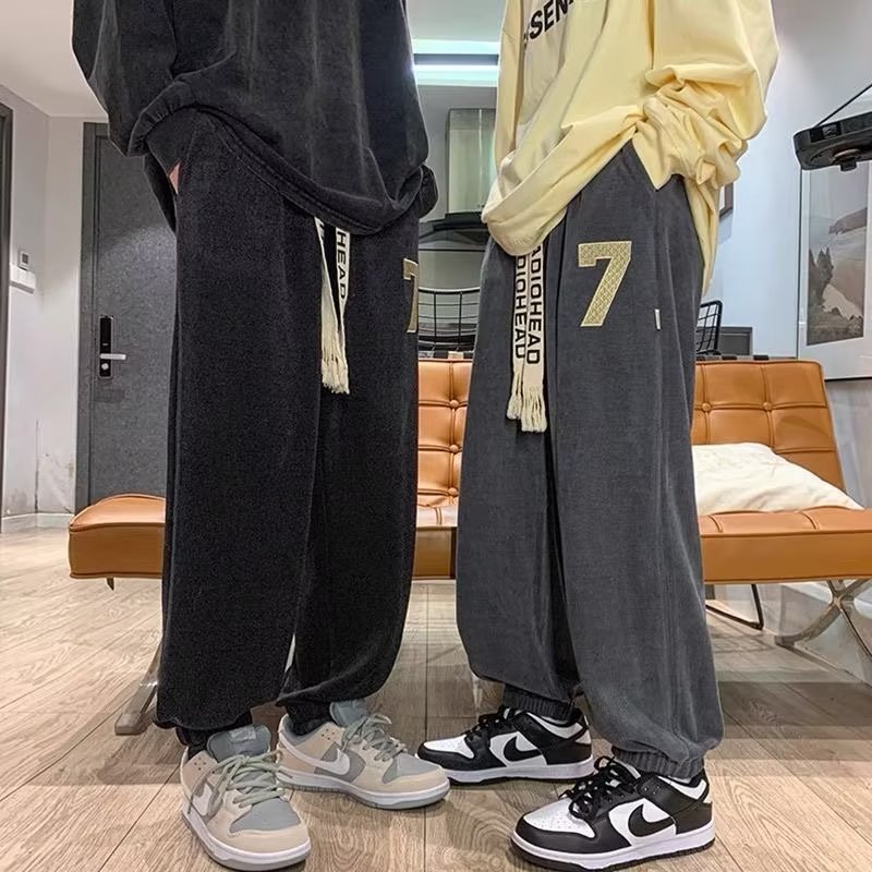 2024新型ベルベット百合スポーツカップルの流行レジャーゆるいズボンコーデュロイ刺繍学生対外貿易