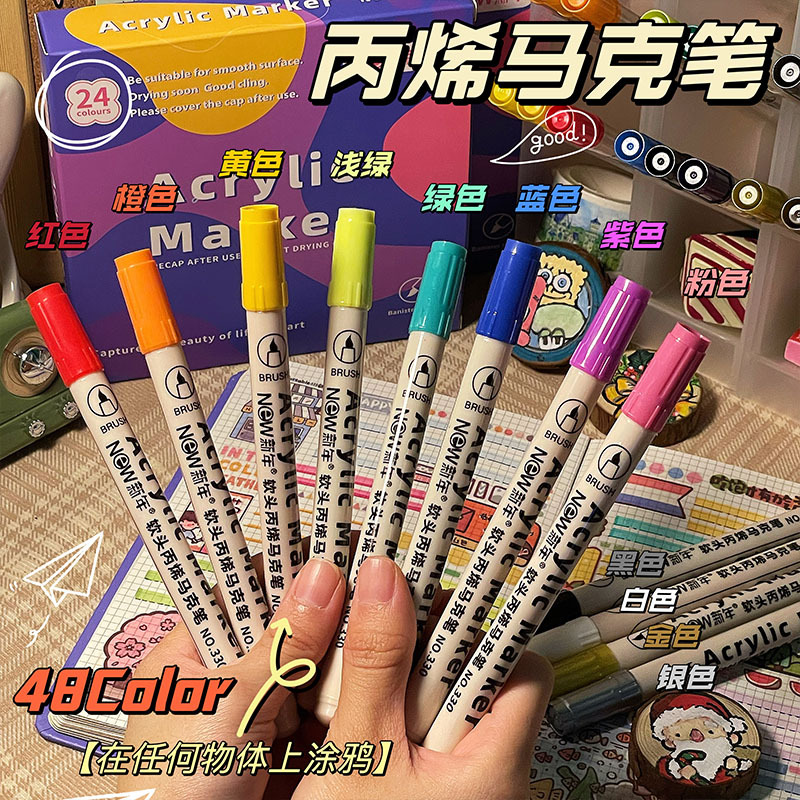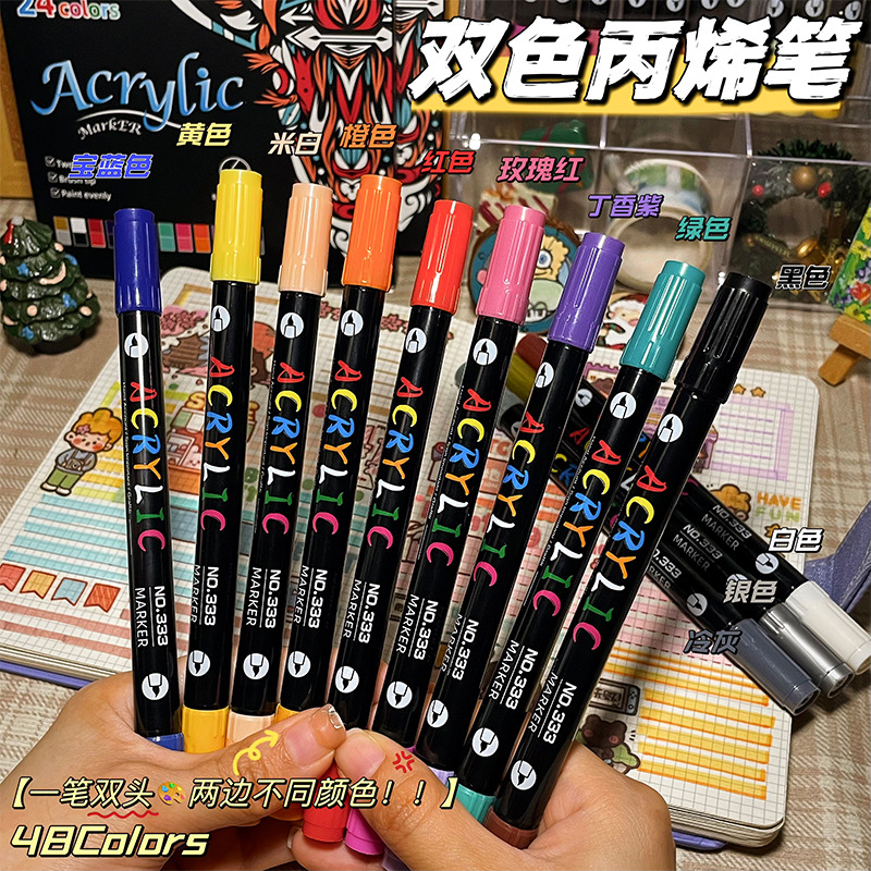 ダブルヘッド2色アクリルマークペン48色ソフトヘッド絵画ペン人体彩色陶磁器落書き美術ペン卸売り