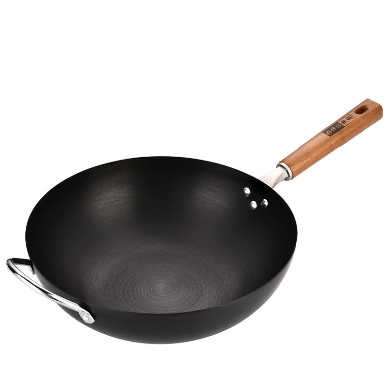 メーカー卸売、良きパートナー、もう一つの喜び、焦げ付き防止の木製ハンドル付き鉄鍋、炒め鍋、屋台や移動販売活動の景品