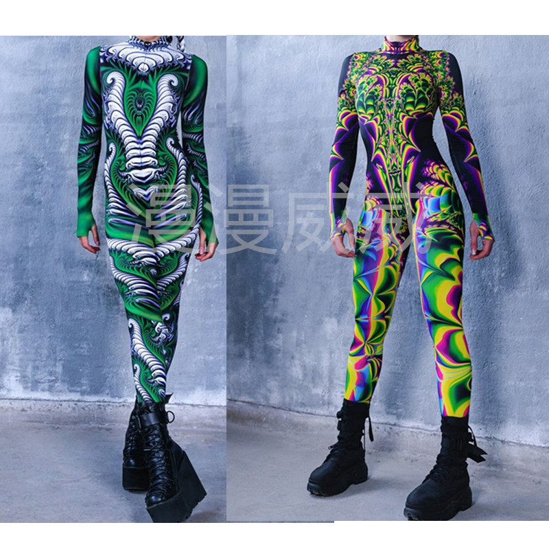 国境を越えた新型欧米ハロウィーン3dデジタルプリントコスプレは女装ガードル長袖連体ズボンを演じた