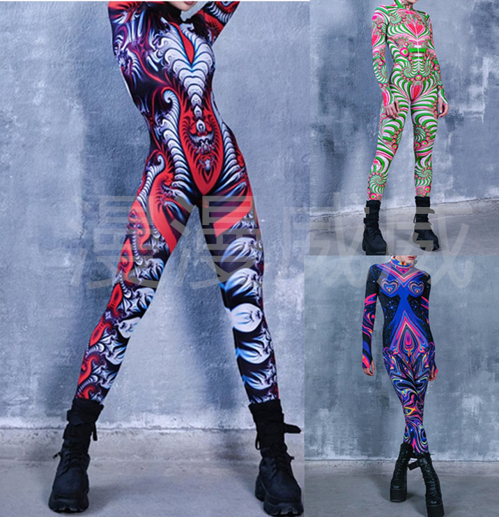 新型2023ハロウィーン3dデジタルプリントコスプレは女装ガードル長袖連体ズボンを演じます。