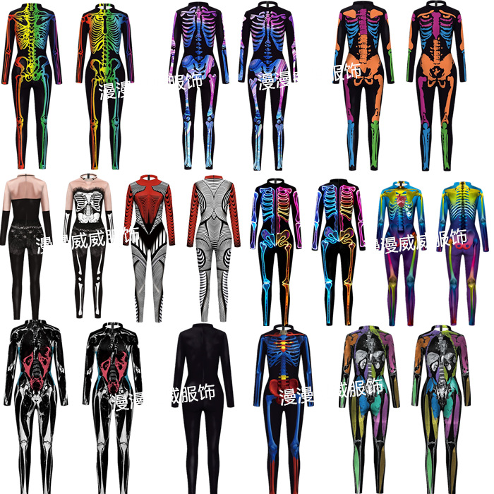 2022ハロウィーン新型カラー骨格3d立体デジタルプリント成人児童痩せ長袖cos連