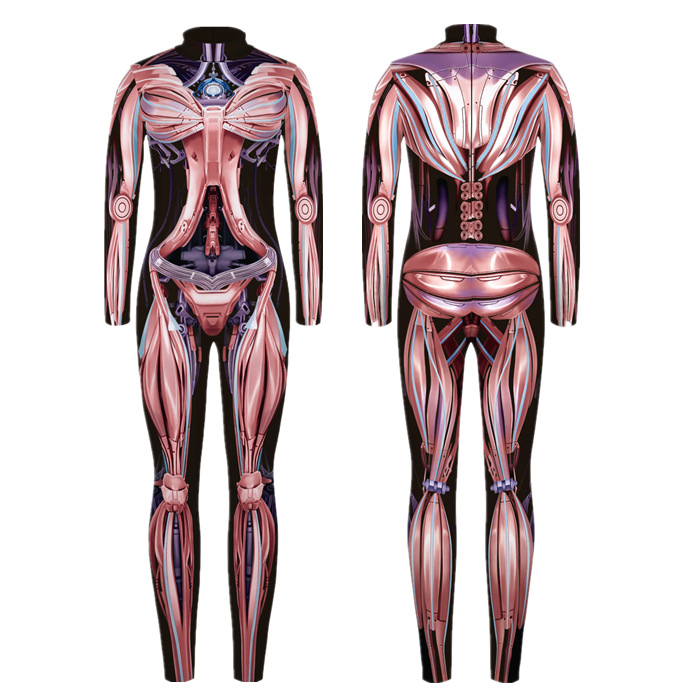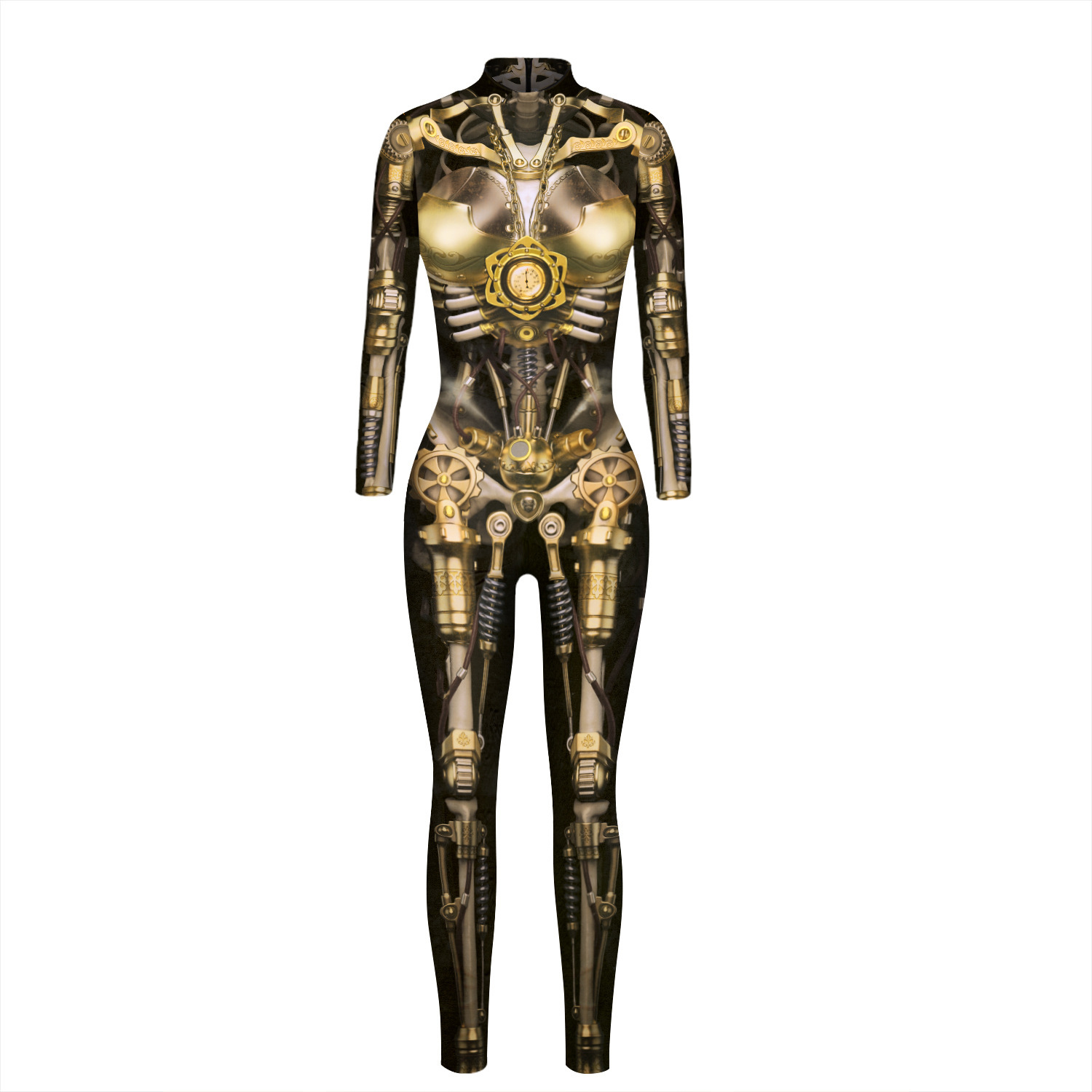 2022ハロウィーンの新しい熱売機械鎧3dデジタルプリントのスリムな長袖cos連体ズボンの女性
