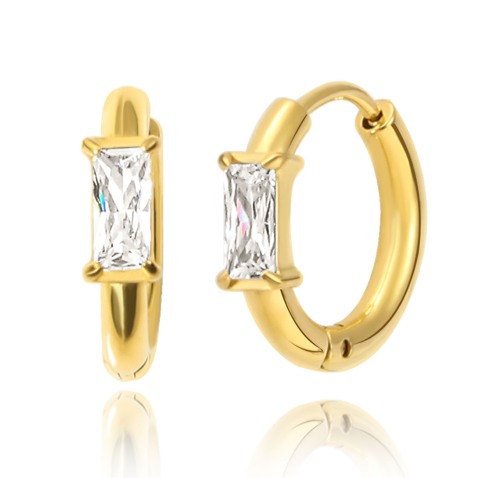 欧米の金属の冷淡な風のシンプルなアーチ型の光沢面のステンレスの電気めっきの18kの真金の流行の長春kyの耳のボタンの耳