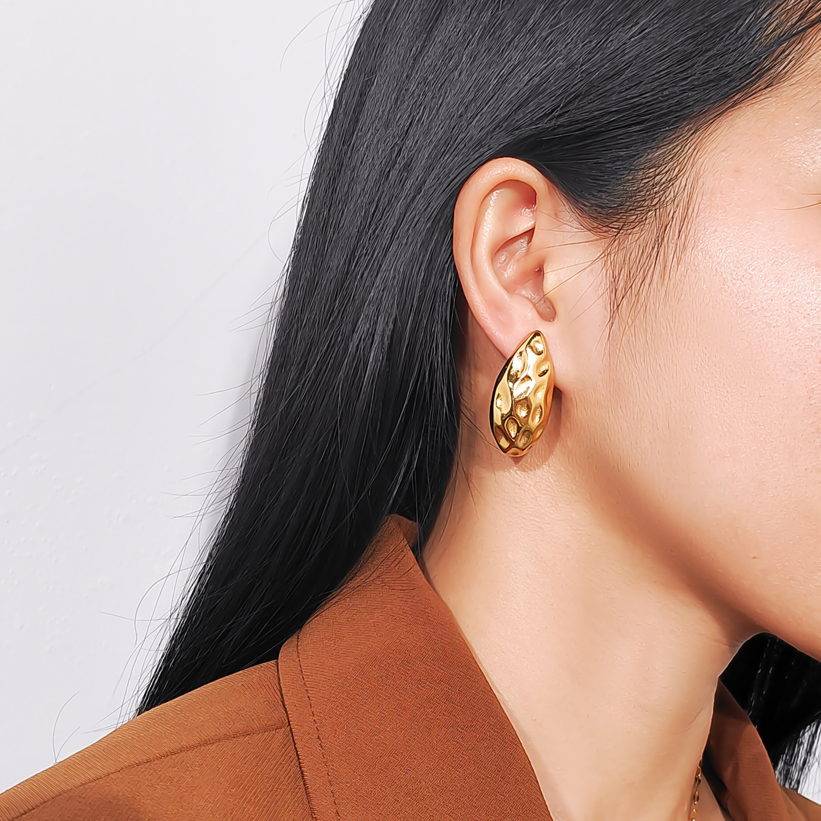 欧米の金属の冷たい風の楕円の水滴のイヤリングの女性のシンプルなピアスの不規則な面の高級感の出勤する装飾品