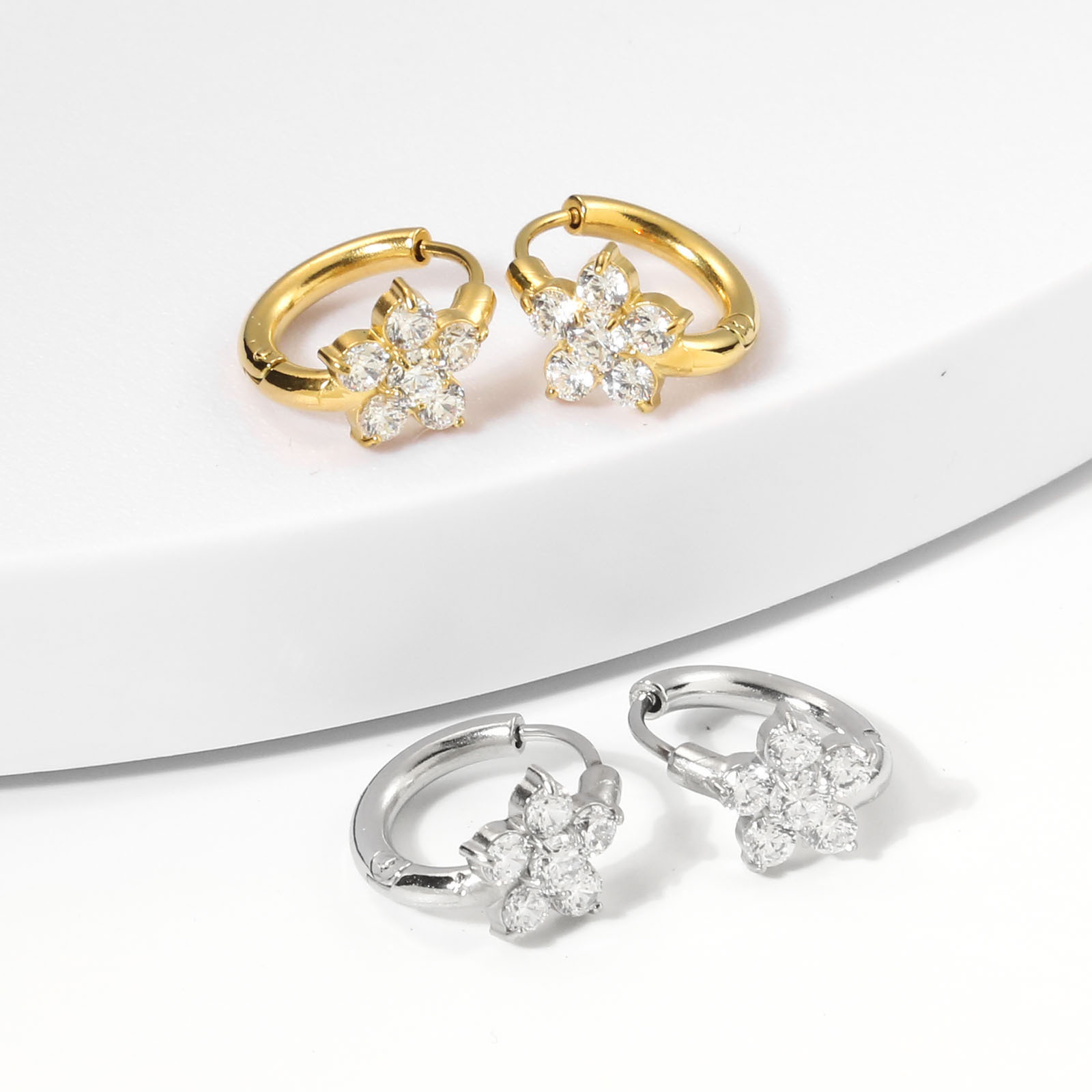 SDA新型Ins風ステンレス花ジルコン耳輪女性精致韓流ファッションイヤリング