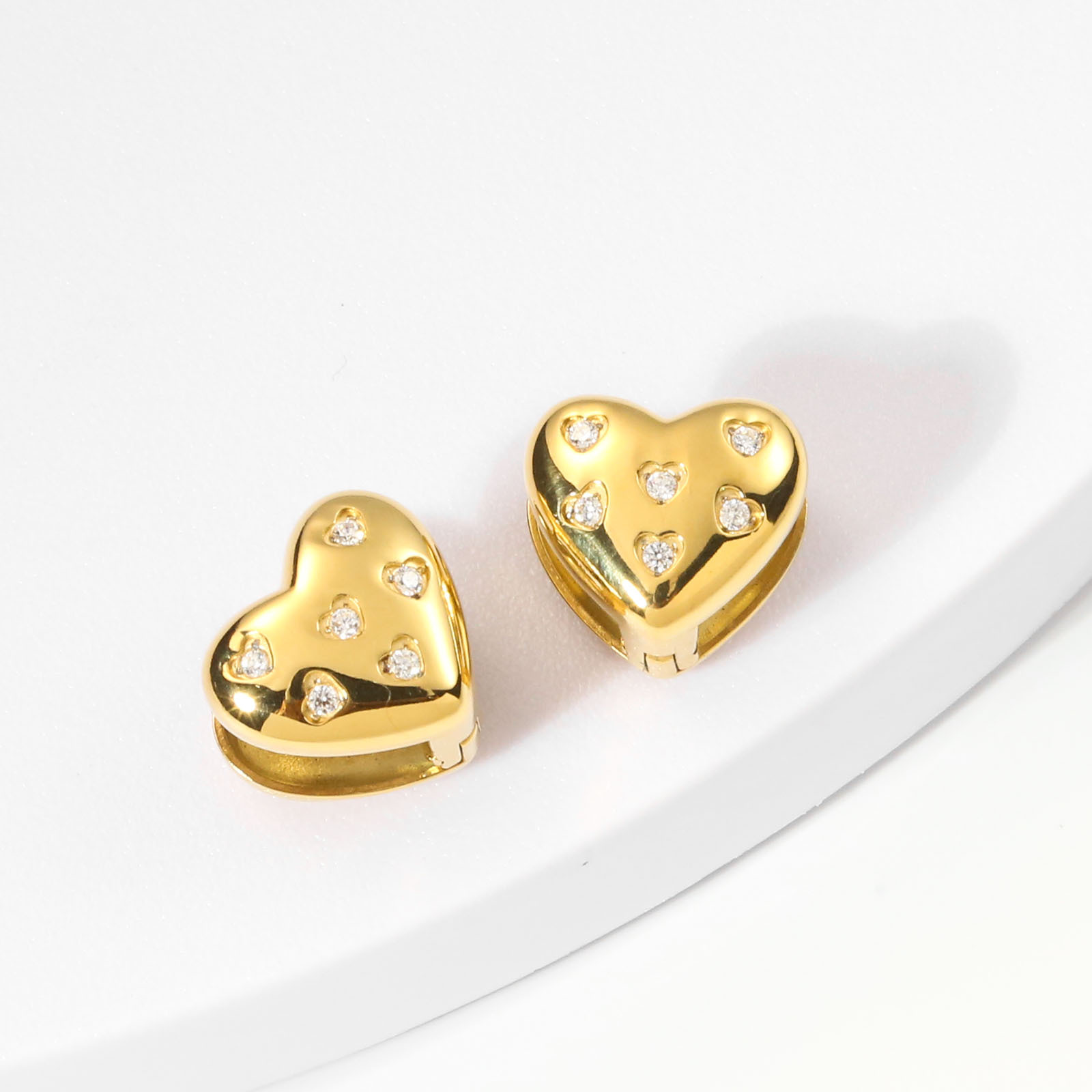 SDAジルコンイヤリング愛ハート型イヤリング内外両面にドリルステンレス18k金メッキins高級耳飾り女