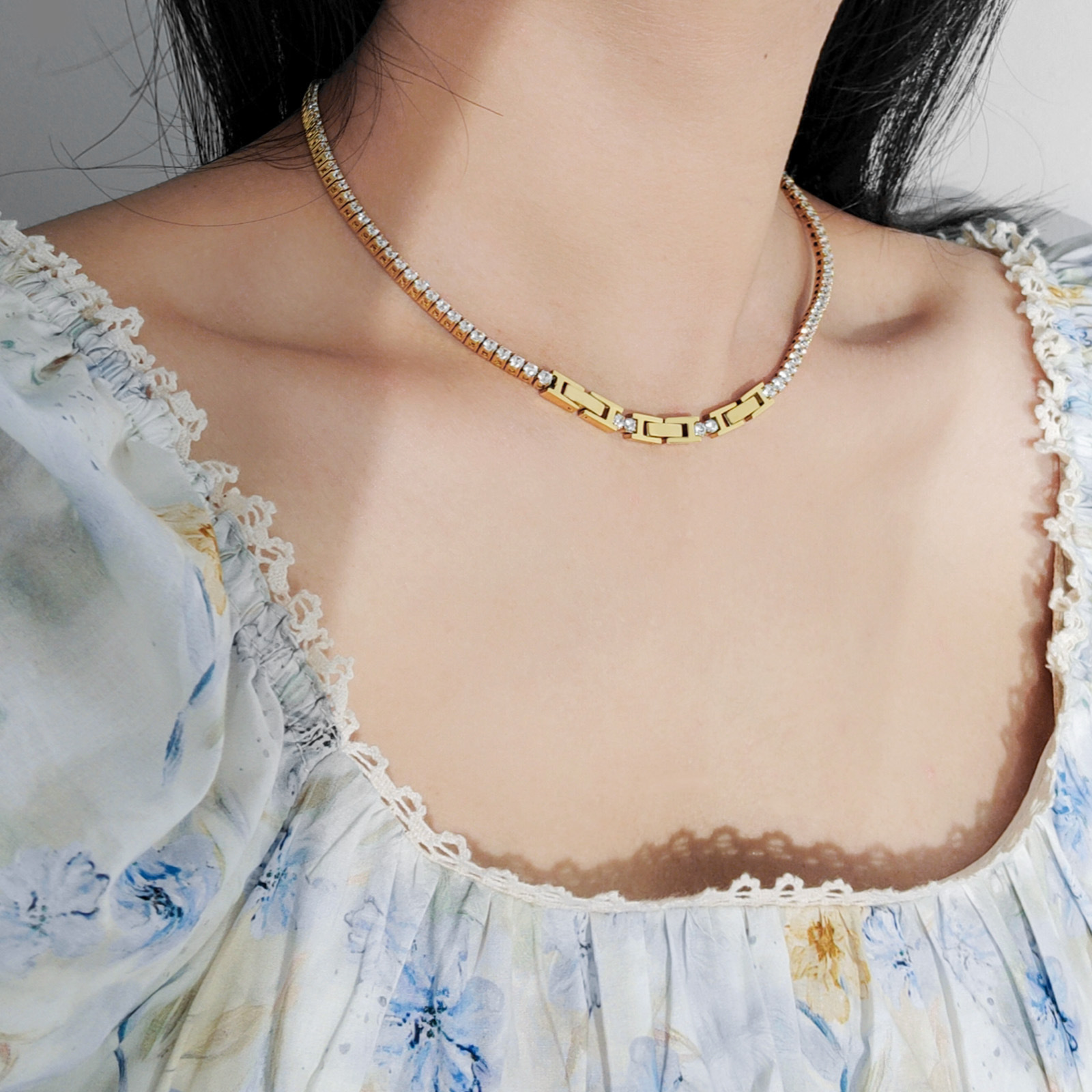 世達にはドリルテニスチェーンを入れて、延長ボタンを外して5aジルコンのネックレス3mm幅の鎖骨チェーンChokerをはめることができます。