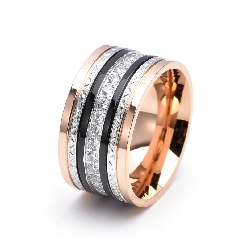 2023新商品の対外貿易アクセサリーの商品源ステンレス三色間電気のダイヤモンドの指輪ステンレス5aジルコンの指輪
