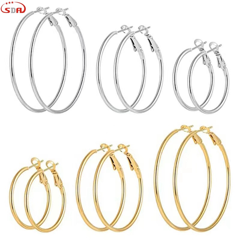 Sda工场卸売ステンレス钢アクセサリー大きなサークルイヤリングセットレディースファッションチタン钢ホップアーリング