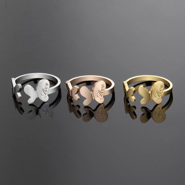フランス式の優雅な女の子の蝶のloveの開口の指輪のステンレスの調節可能なダイエットの指輪の尾の指輪の多色の選択