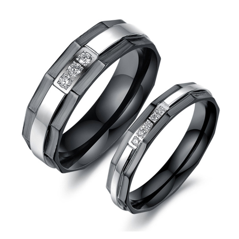 メンズレディース同梱ペアリング4mm 6mm幅ブラック立体幾何学面リングチタンスチール彼氏風アクセサリー