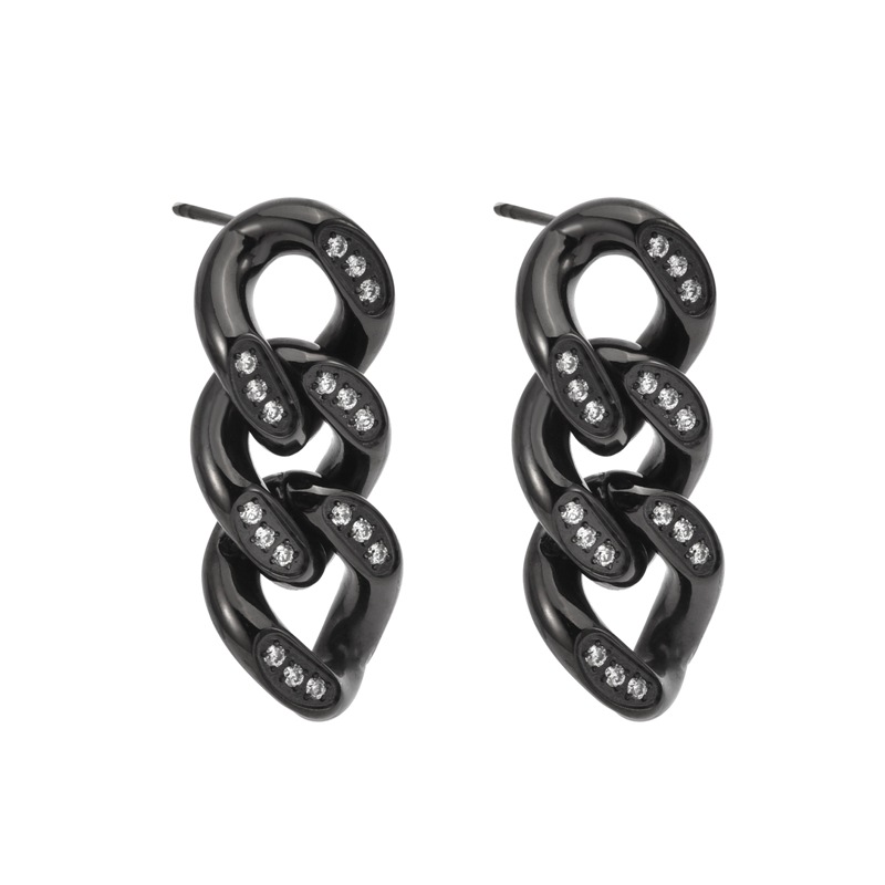 2023新型アクセサリーステンレスチェーンにジルコンイヤリングを入れた男女は個性的なヒップホップアクセサリー金属重工を適用する