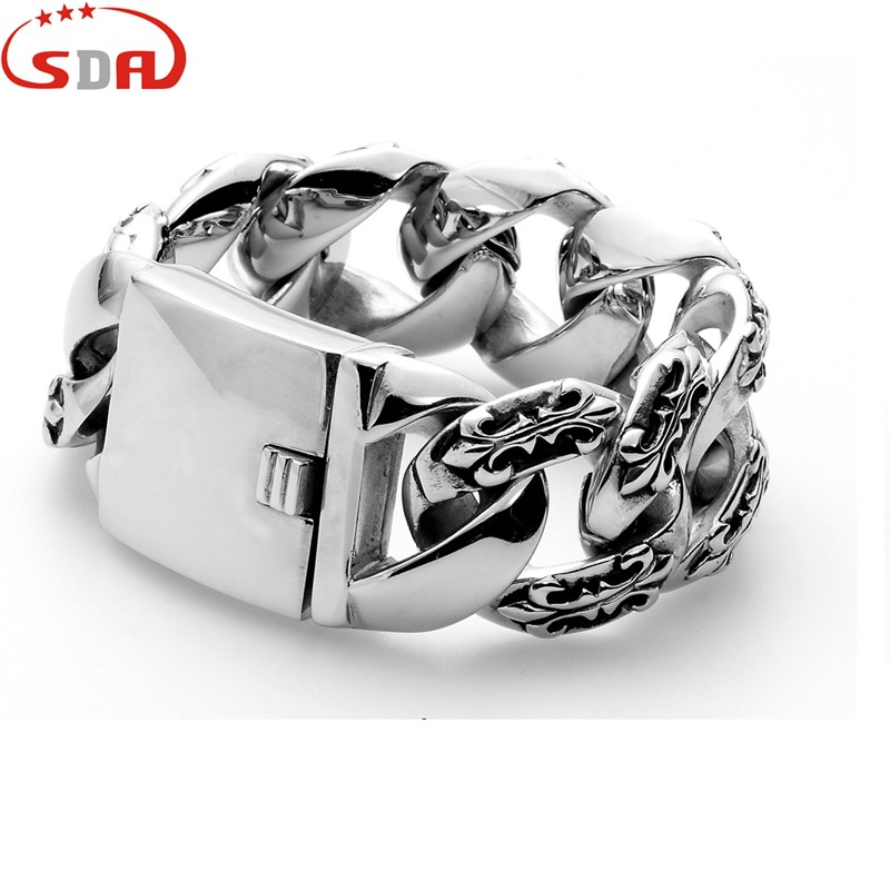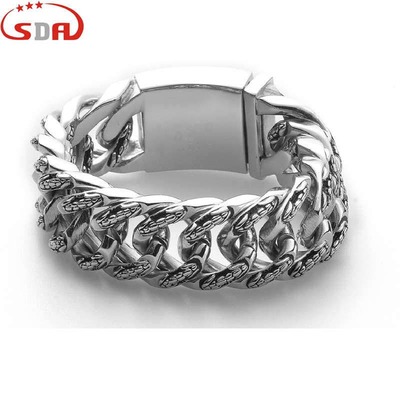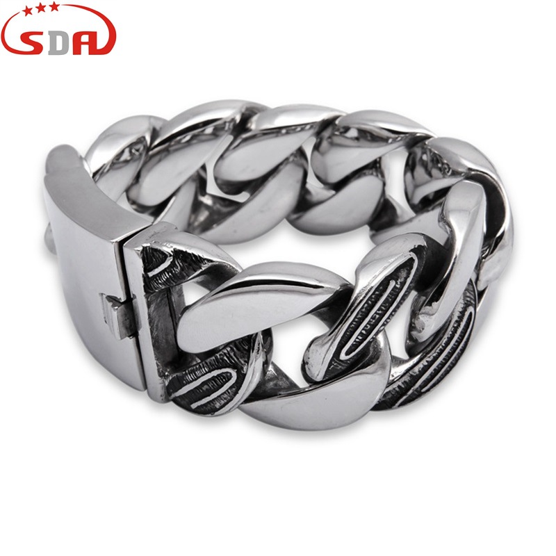 ヒップホップロック小衆個性アクセサリー卸売り大サイズ超幅ブレスレット男性ステンレス鋳造大チェーン32mm幅
